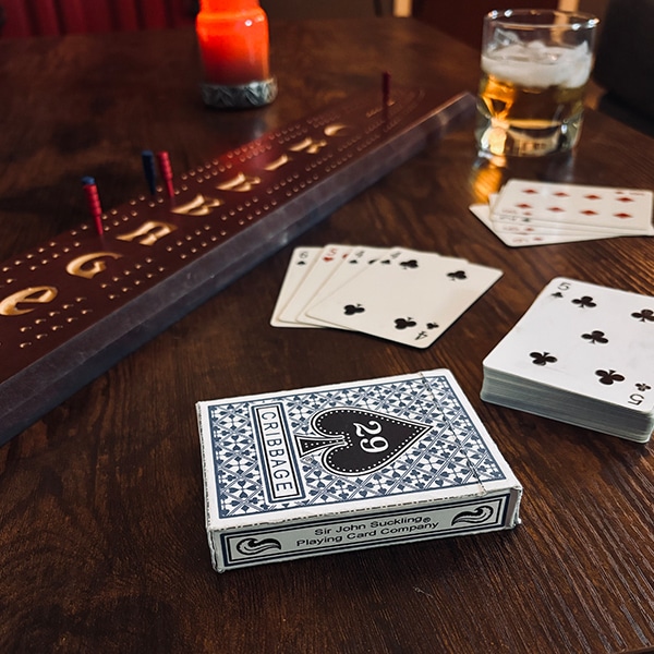 The classic court cards have a few altercations; the Jacks are to resemble the image of Sir John Suckling. The Queen’s holds the four scores that you can not get while playing the game, and the kings are clean-shaven, just like Edmond Hoyle, who compiled books of rules for many games, including Cribbage. Finally, the ultimate score of “29” is located in the center of the Ace of Spades.